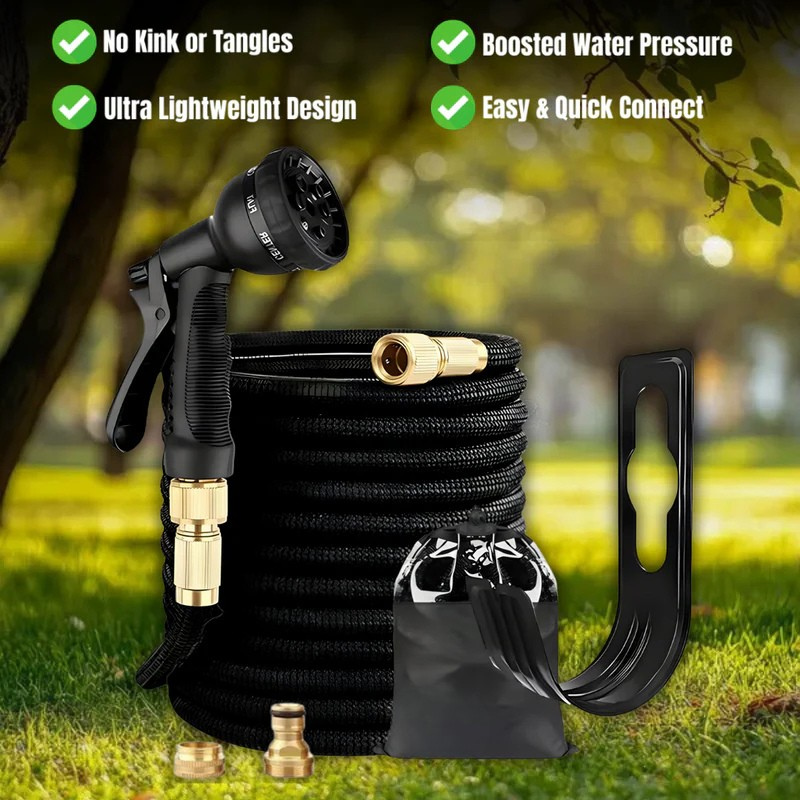 This expandable garden hose is ultra-lightweight, kink-free, and quick to connect.